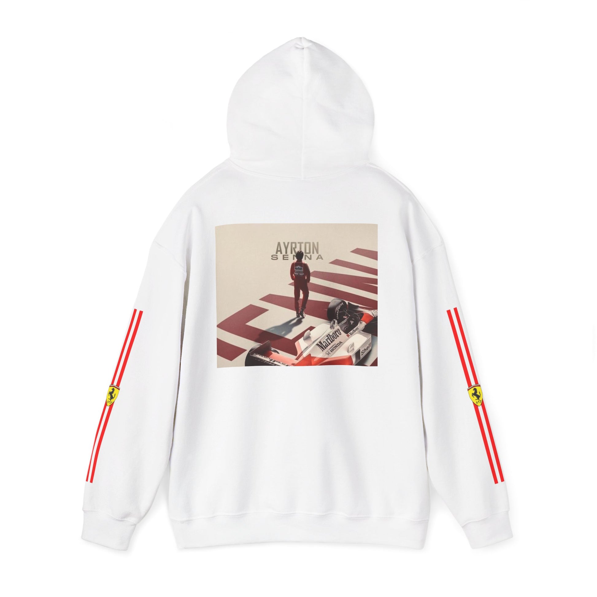 Ferrari Racing Hoodie – Prancing Horse & Ayrton Senna Retro F1 Graphic